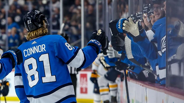 "Виннипег Джетс"-"Буффало Сэйбрз" 3:1.Кайл Коннор набрал 3 очка (2+1),Блэйк Уилер отдал 2 результативные передачи,Коннор Хеллебайк отразил 25 бросков.