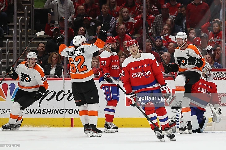 Сейчас лидером дивизиона является "Вашингтон Кэпиталз". Но их преимущество составляет всего 1 очко. В последних 16 матчах "Кэпиталз" сыграли 6-9-1. Их форма оставляет желать лучшего, и это касается всех компонентов игры. По статистике с 1 января, процент выигранных вбрасываний один из худших в лиге - 46.4%. Меньшинство хуже, чем у других конкурентов по дивизиону - 80.3%, тогда как у "Флайерз" - 81.7%, а у "Питтсбурга" - 83.1%. Большинство тоже хромает - процент реализации составляет всего 17.6%. Возможно, их спад вызван тем, что команда находится под нагрузками, чтобы в лучшей форме подойти к плей-офф. Но продолжать в том же духе команда не должна. Если спад не прекратится, то ни о каком лидерстве в дивизионе речи и быть не может.