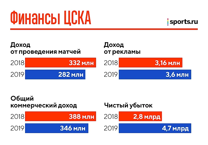 У ЦСКА все заметно хуже – чистый убыток за год вырос с 2 до 4,7 млрд. Показательно, кстати, что он практически равен сумме субсидии от «Роснефти». Правда, для нефтяной компании такие расходы почти незаметны (по крайней мере, до весеннего кризиса): ее чистая прибыль составила 805 млрд рублей – ЦСКА для компании не такой масштабный проект, как может показаться.