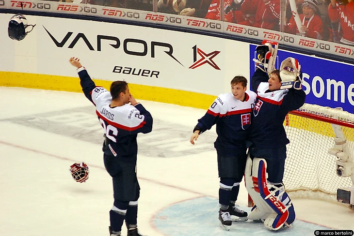 Перед началом плей-офф представители сборной Канады, уже пятый год подряд делавшей вид, что выбить её с ЧМ могут только Вячеслав Быков и Игорь Захаркин, детально изучили сильные стороны всех лидеров сборной Словакии и потому прекрасно знали, в какой хоккей будут играть их противники. Однако первые 10 минут их четвертьфинального матча, за которые они умудрились пропустить две шайбы, вышли просто обескураживающими. Не воспользовавшись ранним удалением капитана "Кленовых листьев" Райана Гецлафа, форвард первого звена Томаш Копецки всё-таки открыл счёт через полминуты после его окончания, а несколько смен спустя точный бросок Мирослава Шатана удвоил преимущество словаков и вызвал на скамейке Брента Саттера настоящую панику.