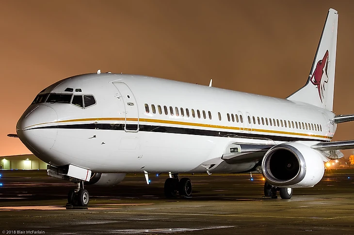Еще один клуб НХЛ, у которого есть собственный самолет. Новенький Боинг 737 пришел на смену аналогичной модели, которой раньше пользовался «Даллас Старз».