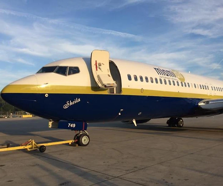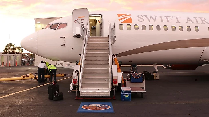 У «ураганов» контракт с Swift Air. Боинг 737 компании заснят в Калифорнии перед вылетом в Детройт.