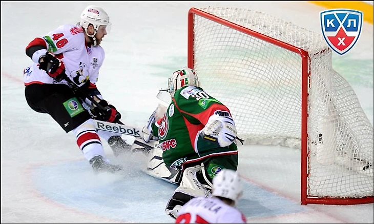 Тут история почти как с Авангардом. Однако, стоит немного оговорится, Трактор 2013 года, при заходе в плей-офф не выглядел таким фаворитом, как еще год назад. В первую очередь из-за концовки регулярки. Трактор из последних 14 матчей перед плей-оффом выиграл 7 и проиграл 7, для команды, которая идет за кубком не лучший результат. Во-вторых, на Челябинск прямо перед началом плей-офф упал метеорит, из-за этого пострадала арена Трактор и команда даже не знал, будет ли она играть дома, да и тренировки были чуть скорректированы, не говоря уже об эмоциональном состоянии, когда тебя от неминуемой трагедии отделили пару секунд, тяжело сразу прийти в себя. Ну и напоследок стоит сказать о скамейки, в отличие от прошлого года у Трактора ее не было, 4 и 3 звено, по сути, было собранно из своих молодых игроков, а единственный резерв был в лице Николая Лемтюгова.