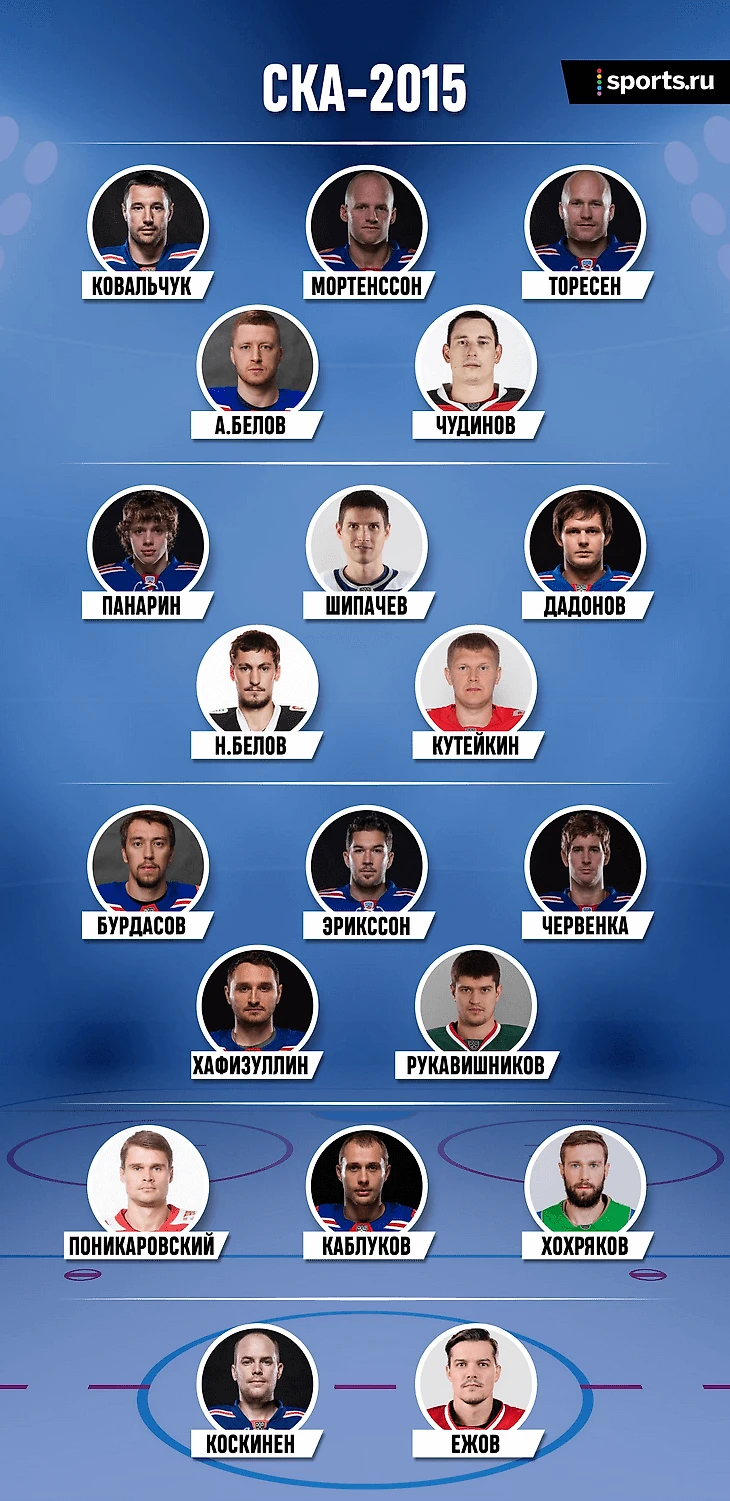 В сезоне-2014/15 в Питере был невероятный состав – возможно, самый мощный в истории клуба да и вообще всей лиги. Илья Ковальчук, Артемий Панарин, Патрик Торесен, Вадим Шипачев, Евгений Дадонов – с таким нападением можно было бы и в НХЛ заявляться. В третьей тройке, например, играл топовый чех Роман Червенка. А Виктор Тихонов, фееривший в сборной на ЧМ-2014, после третьего матча серии с ЦСКА вообще перестал попадать в состав.