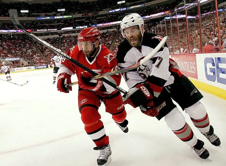 Защиту «Каролины» журналисты описывали так: «Аарон Уорд, которого в «Детройте» так часто критиковал Боумэн, что защитник мог бы поменять имя на ###### Уорд. Франтишек Каберле – только второй лучший Каберле в НХЛ после своего брата Томаша. Бретт Хедикан, который гораздо больше известен своей женой, олимпийской чемпионской в фигурном катании Кристи Ямагучи. Наконец, Глен Уэсли, который сыграл в плей-офф рекордные 166 игр без кубка». В общем, это отряд самоубийц – по-другому сказать нельзя.