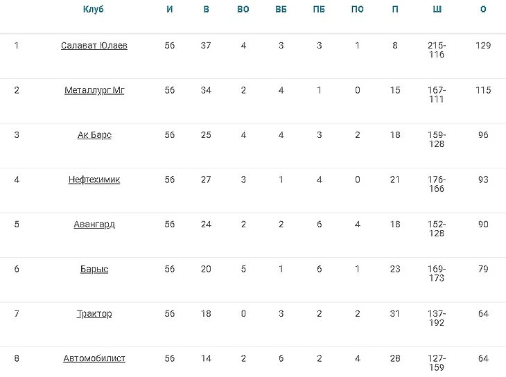 Регулярный чемпионат. Конференция «Восток»