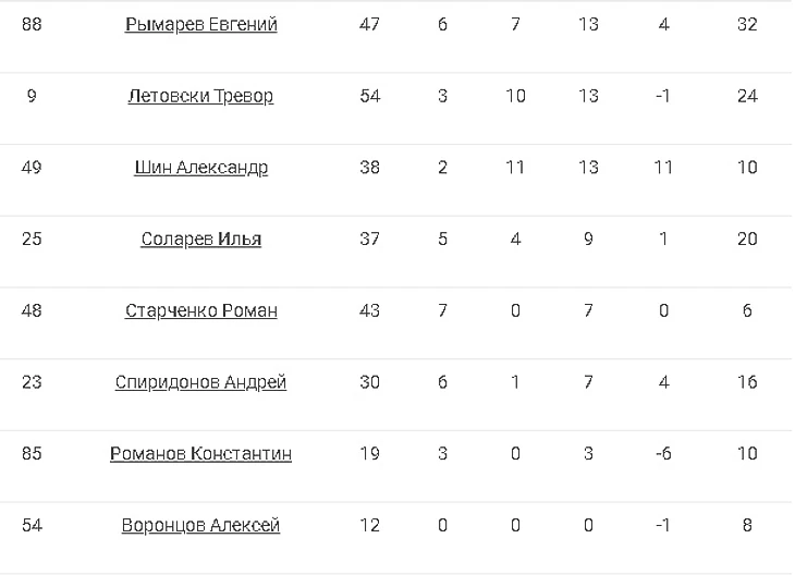 Во втором сезоне КХЛ индивидуальную награду «За верность хоккею» получил и один из самых известных хоккеистов Казахстана 41-летний нападающий Александр Корешков. Стоит отметить и блестящую игру канадского голкипера Джеффа Гласса, который практически вытеснил из ворот казахстанца Алексея Кузнецова, здорово проявившего себя год назад. Неплохо проявили себя перешедший из питерского СКА нападающий Дэвид Немировски – 29(15+14) очков и защитник Петер Подхрадски –27 (8+19), игравший ранее в нижегородском «Торпедо».