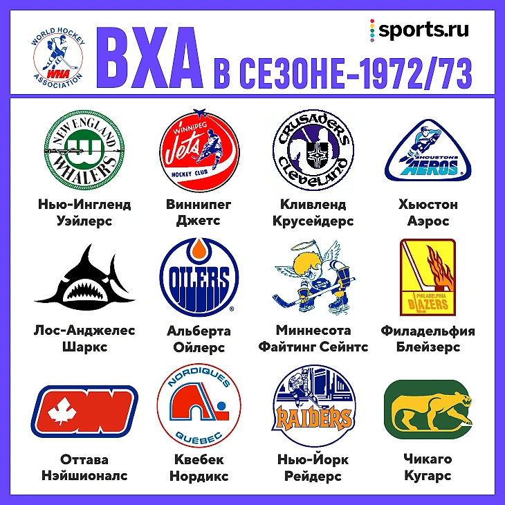 Любопытно, что цена на франшизу ВХА составила 25 тысяч долларов. Для сравнения, чтобы стать владельцем франшизы НБА в 70-е, новому владельцу пришлось бы заплатить полтора миллиона, а в 2017-м «Вегас» попал в НХЛ после взноса в 500 млн долларов.