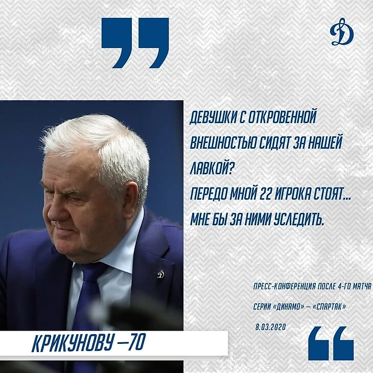 Это точно не про Владимира Крикунова. Любое безобидное интервью главного тренера бело-голубых может превратиться в стендап и разлететься на цитаты. При этом происходит это также естественно, как и очищение природы в дни всемирной пандемии.