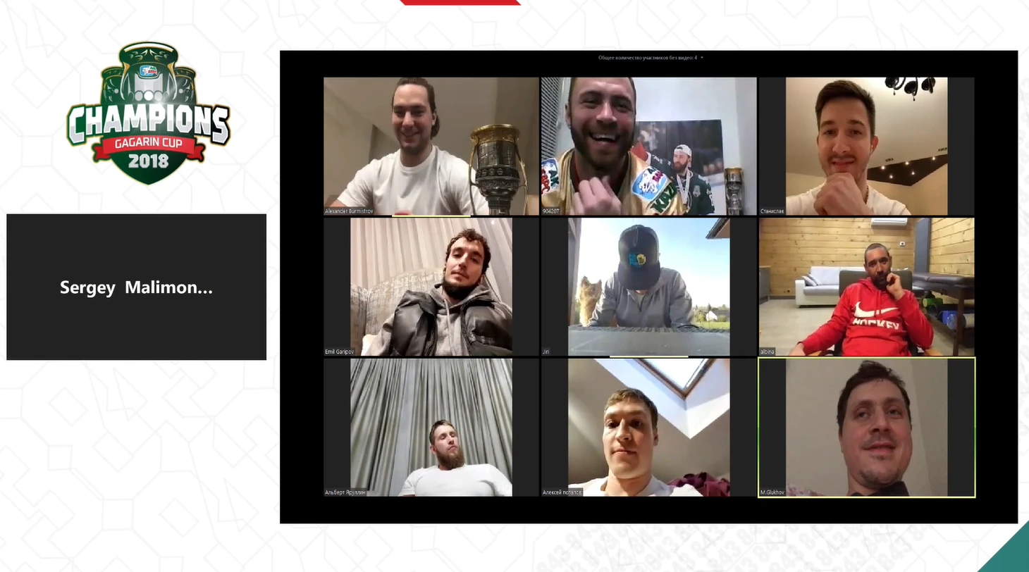 Хоккеисты, понятное дело, сейчас дома – и каждый включался оттуда: Артем Лукоянов, Альберт Яруллин, Эмиль Гарипов, Станислав Галиев и Александр Бурмистров – из Казани, Михаил Глухов – из Москвы, Алексей Потапов – из Нижнего Новгорода, Иржи Секач – из Праги, Данис Зарипов – из поселка Тетеево.