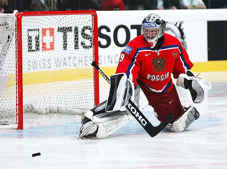 Та команда с невероятным трудом вышла из группы (еле обошла Украину), а в плей-офф случилось чудо – и у этого чуда было вполне конкретное имя. Свой лучший турнир провел голкипер Максим Соколов, которого обделяли вниманием большую часть карьеры и который в Швецию поехал запасным вратарем, хотя на ЧМ-2001 был первым номером.