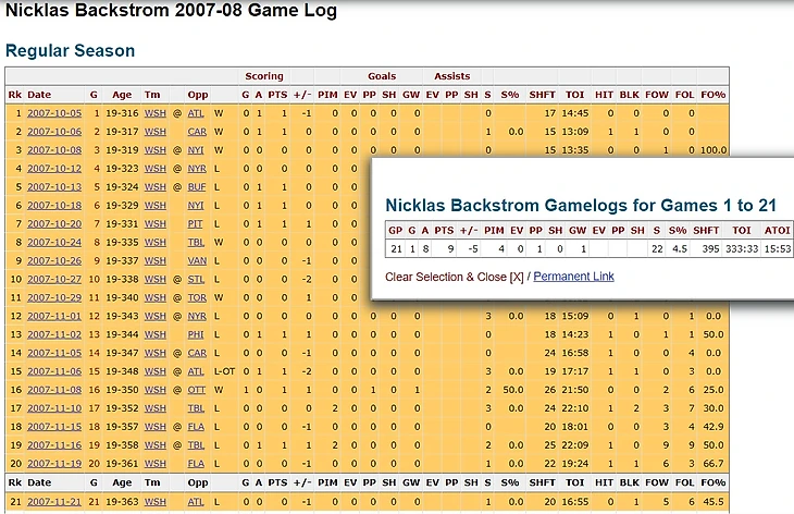На момент остановки сезона из 48 голов Овечкина, Бэкстрем напрямую приложился только к 6, пару раз праймери ассистом послужило выигранное вбрасывние.