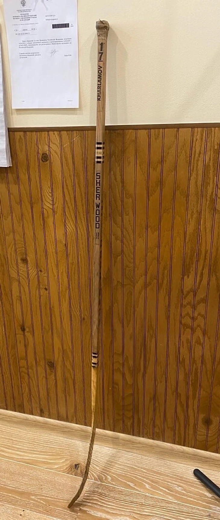 Харламов вошел в кабинет с клюшкой отца из своей коллекции, которую подарил Муратову.