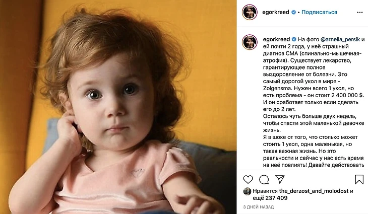 В итоге к челленджу присоединились не только люди из спорта (Георгий Джикия и «Спартак» перевели 2,4 млн, агенты Алан Агузаров и Марат Арчегов – 5 млн, Роберто Карлос и Самюэль Это’О рассказали о девочке в инстаграме), но и шоу-бизнес: Егор Крид с фанатами собрал 23 млн за сутки, помогли и Владимир Познер, Иван Ургант и Филипп Киркоров.