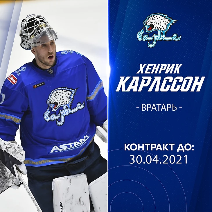 Нур-султанский «Барыс» официально объявил о заключении нового контракта с 36-летним вратарем сборной Казахстана Хенриком Карлссоном, сообщает пресс-служба клуба из казахстанской столицы.