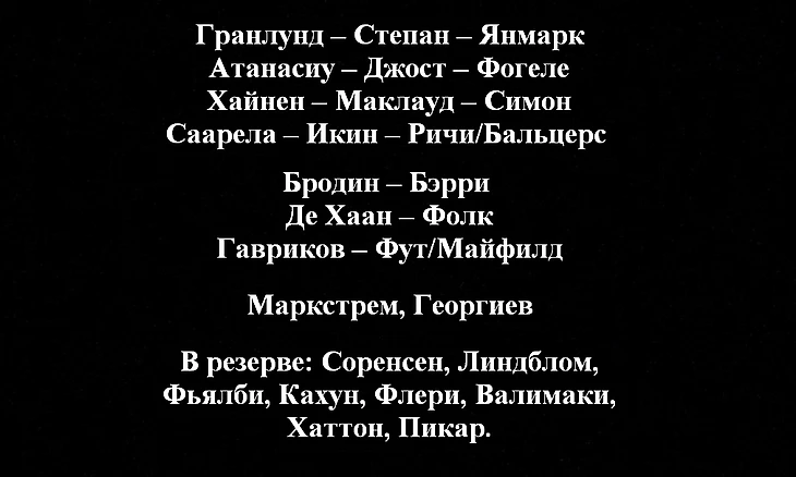 В составе получилось 30 игроков – 17 форвардов, 10 защитников и 3 голкипера. На все контракты уйдет порядка 81,5 миллиона. На основной состав, естественно, меньше. Проблем с потолком не будет. Что получилось по силе состава? Вот примерные звенья