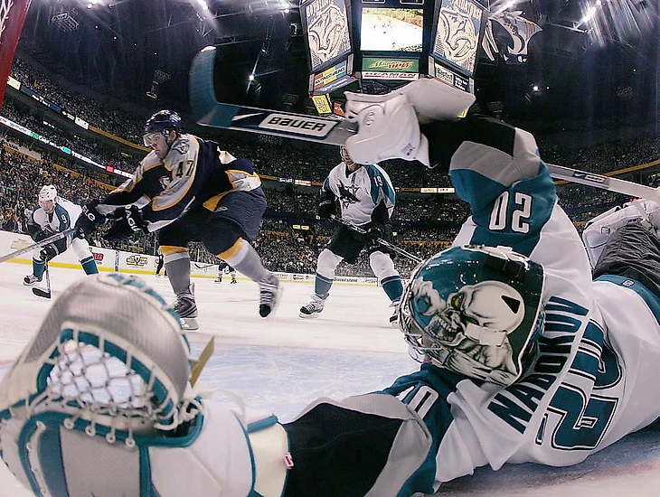 Если мне не изменяет память, Набоков хотел новый контракт с зарплатой 6+ миллионов долларов в год, требуемый срок – свыше трех лет. Да, потолок зарплат в лиге постепенно рос. Но Уилсон однозначно не готов был столько платить голкиперу, которого так часто критиковали за игру в плей-офф. Ведь в те годы зарплата в 6 миллионов котировалась в топе, примерно столько получали одни из ведущих игроков в лиге. ГМ Сан-Хосе предлагал Набокову ежегодную сумму в районе 4 миллионов, что тоже немало, но Евгения такое предложение категорически не устраивало. По правде говоря, это было по-настоящему приемлемое предложение, Набби явно себя переоценил в тот момент. Но это часть бизнеса, и никто не может винить Евгения за его самооценку, это было его право выбора.