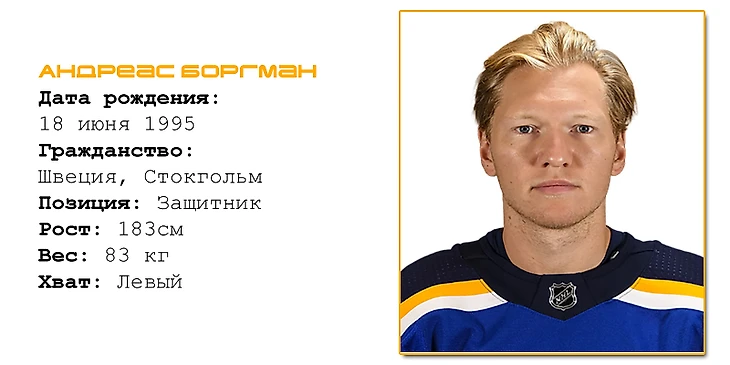 Летом 2019 в результате обмена Андреас Боргман из «Торонто» перешел в «Сент-Луис», но за основу «блюзменов» так и не сыграл, оставшись в АХЛ, в составе «Сан-Антонио».