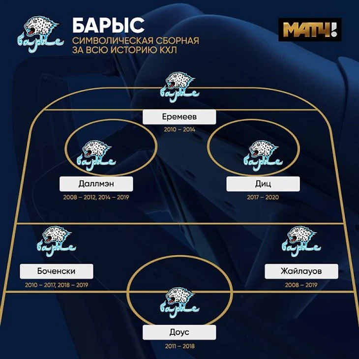 «Матч ТВ» представил символическую сборную «Барыса» в КХЛ и напомнил о грозном Рыспаеве