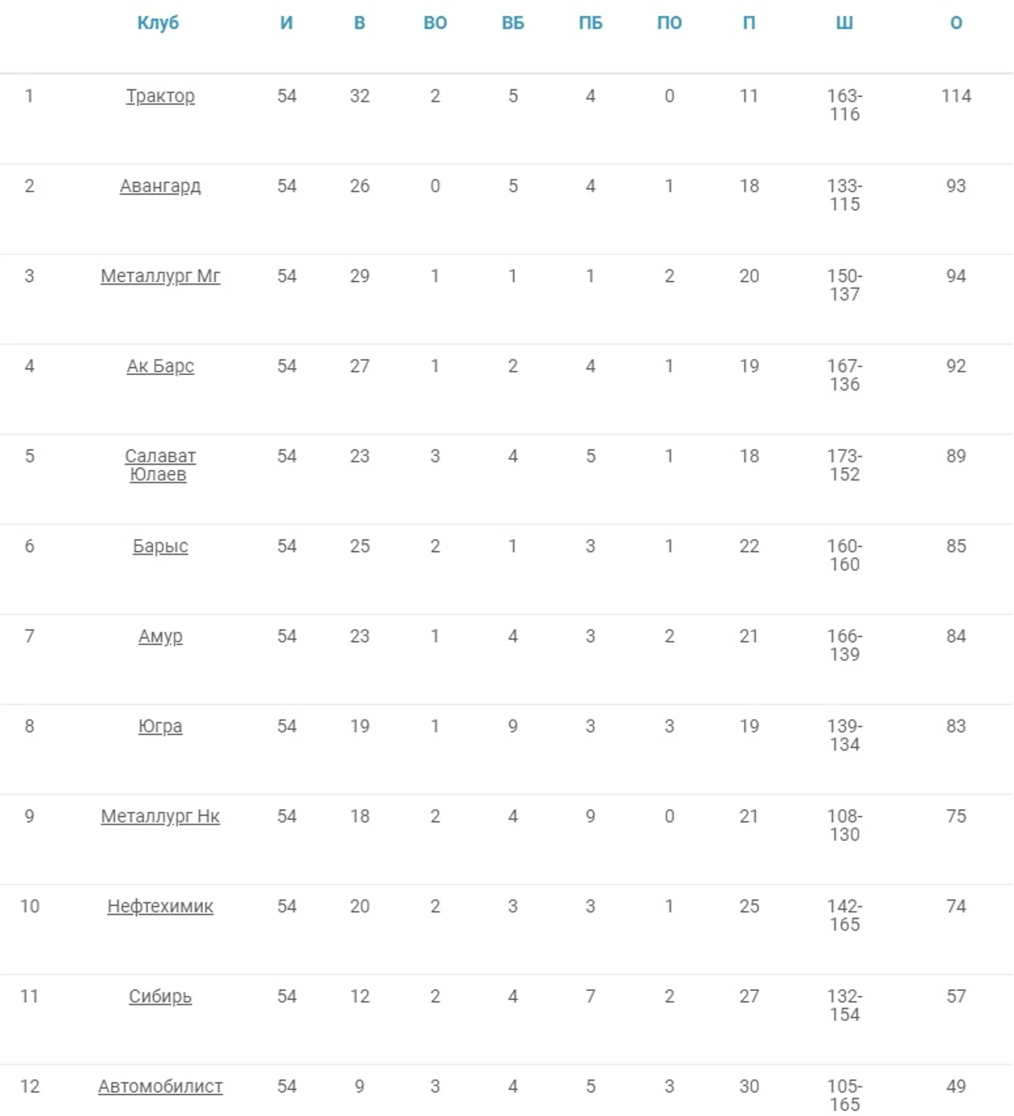 Регулярный чемпионат 2011-2012. Конференция «Восток»