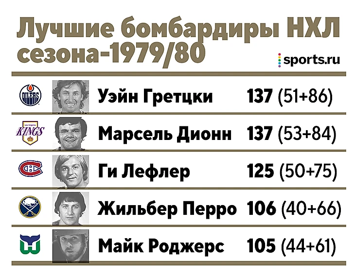 Дионна и Ги Лефлера тогда называли «Иисусом и Богом НХЛ». В первый же сезон в НХЛ Гретцки встал с ними в один ряд – зимой 1980-го он сказал, что догонит Дионна. Обещание он сдержал, даже дважды – 50-й гол он обещал положить дома против «Миннесоты» и сделал это. В последнем матче сезона он набрал три очка и сравнялся с Дионном за полторы минуты до конца – помогли «Колорадо» и тот самый шведский вратарь, которого весь сезон пинал Дон Черри.