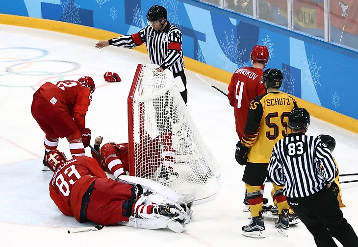 Спадом по ходу всего матча даже "не пахло", пока за семь минут до конца Германия не сравняла счёт. Через три минуты заведомые аутсайдеры вовсе вышли вперёд. Удаление в самом конце понизило шансы на успех россиян до минимума. Сняли вратаря, уравняв состав. Удивительным образом перевели игру в овертайм. Сутолока у ворот закончилась броском Никиты Гусева. Тогда это выглядело невероятным. Это был отнюдь не конец. За 20 секунд до сирены Кирилл Капризов своей шайбой добывает долгожданное "золото"!