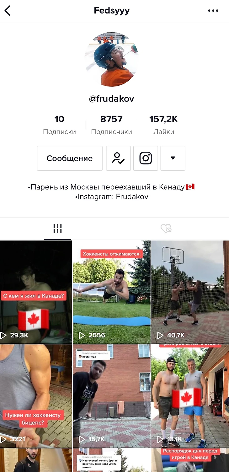 Сегодня мы взяли небольшое интервью у Фёдора Рудакова- парня, который переехал из Москвы в Канаду(Торонто) ради хоккея. Фёдор прошёл через хоккейную школу «ЦСКА». Сейчас он учится в университете Канады, играет в хоккей, ходит на тусовки, а также выкладывает видео на тик-ток, в которых показывает жизнь Канадцев(некоторые видео набирают 400 тысяч просмотров).