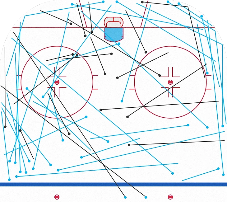 Голубым отмечены точные передачи с точкой приёма шайбы партнёром.