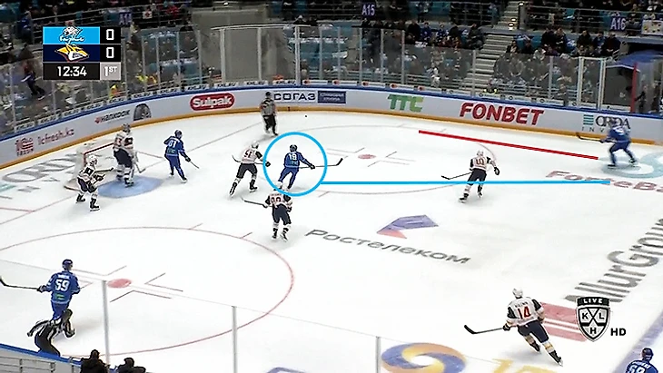 Первая вытекающая отсюда проблема – Найт практически не доставляет шайбу в зону атаки, этим обычно занимались другие игроки. Даже если нападающий получит шайбу на свой синей, он скорее сделает пару шагов и вбросит её, чем войдет сам с контролем.