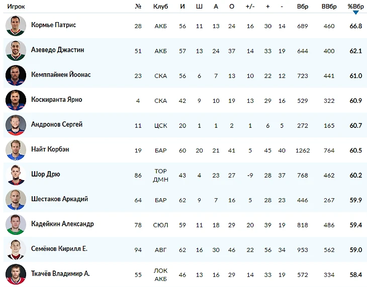 У Азеведо до прихода Кормье был показатель 62% в регулярке и 61% в плей-офф.