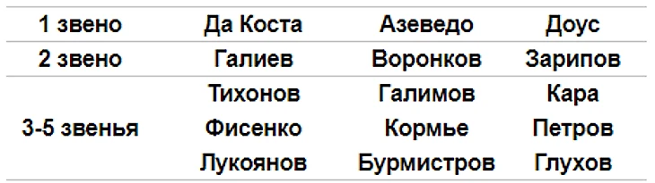 Сейчас расстановка по звеньям выглядит примерно так: