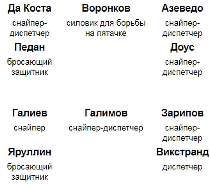 У такого варианта спецбригад есть два некритичных минуса: однообразная система розыгрыша через правый фланг с бросающим защитником слева и отсутствие "столба" на пятачке во второй спецбригаде. В целом спецбригады выглядят перспективно.