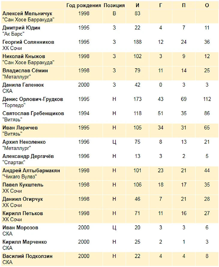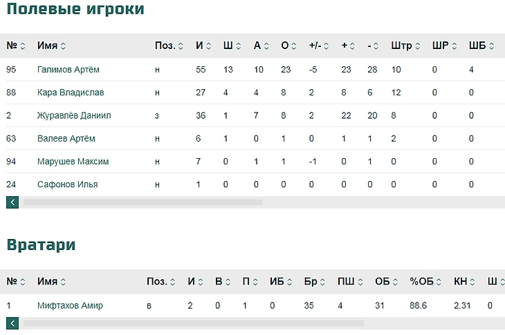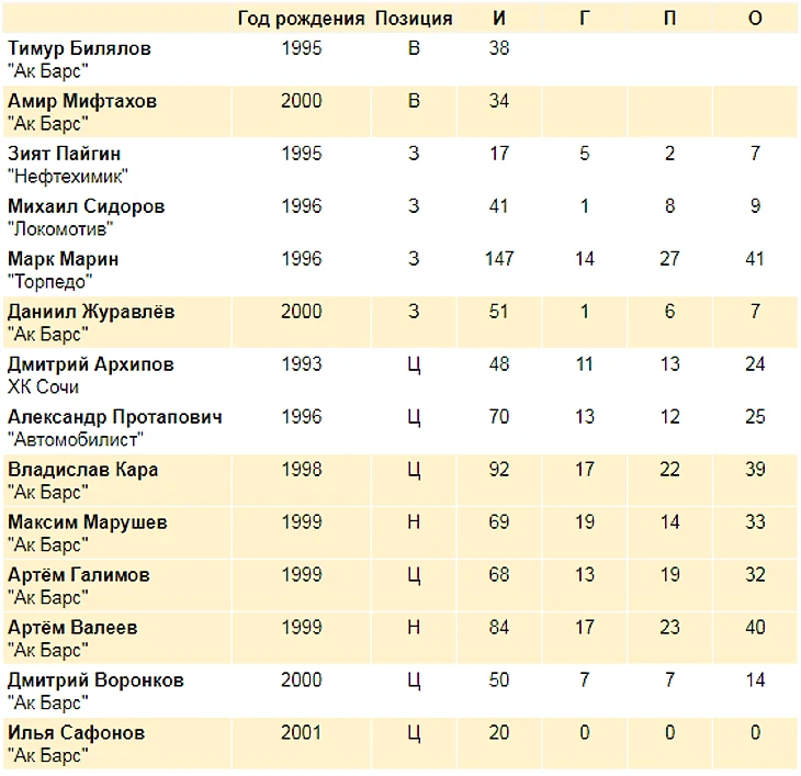 А в этой табличке - статистика "кадейкинских" игроков (которых он принял из молодёжного хоккея) в Ак Барсе: