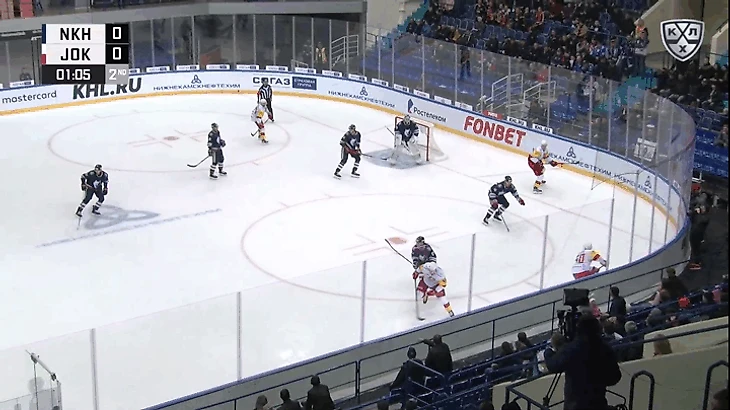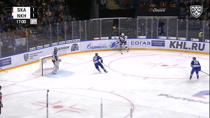 Непосредственно в защите претензий не так много. Была пара-тройка шайб, пропущенных в результате проигранной борьбы на пятаке в равных составах, как на примере выше. Ещё столько же было заброшено через Шарипзянова в меньшинстве. В остальном – хороший и крепкий игрок обороны.
