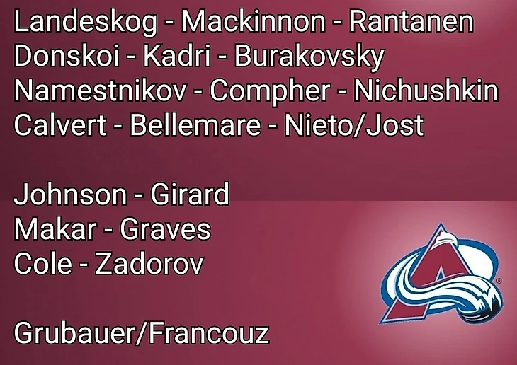 И вот эта остановка сезона сыграла "Колорадо" на руку. Потому что на начало марта количество травм в команде зашкаливало. При этом не доступны для матчей были одновременно - Маккиннон, Рантанен, Кадри, Калверт, Грубауэр, Бураковски, Уилсон. Такие потери на финише сезона могли сказаться и на итоговых результатах. Хоть у "Колорадо" и был очковый запас перед зоной плей-офф, но с таким списком травм "лавины" могли посыпаться. Плей-офф клуб, скорее всего, не потерял бы, но разговоры о победе в конференции точно бы больше не поднимались. Возможная серия поражений и скорое начало плей-офф вынуждала бы форсировать возвращение лидеров, что могло аукнуться еще большими проблемами. Сейчас же за 4 месяца все игроки восстановилась и готовы принять участие в турнире. Оптимальный состав "Колорадо" на данный момент: