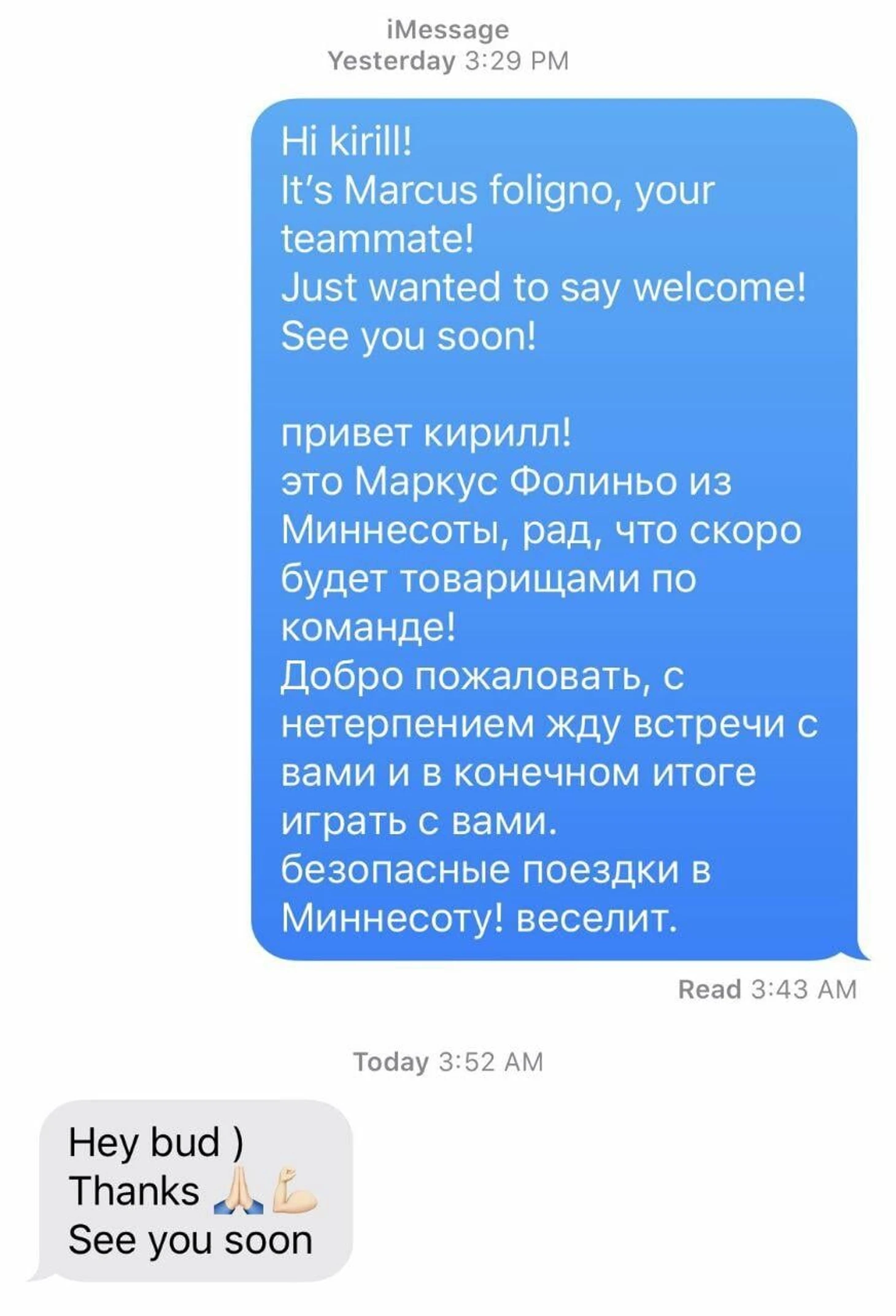Его директ в инстаграме уже атакуют партнеры – одним из первых Капризову написал Маркус Фолиньо. Маркуса сложно назвать звездой, но его уважают в раздевалке клуба – сам он иронично сказал, что «решил представиться партнером по команде, потому что не уверен, что Капризов знает, что я играю в НХЛ».
