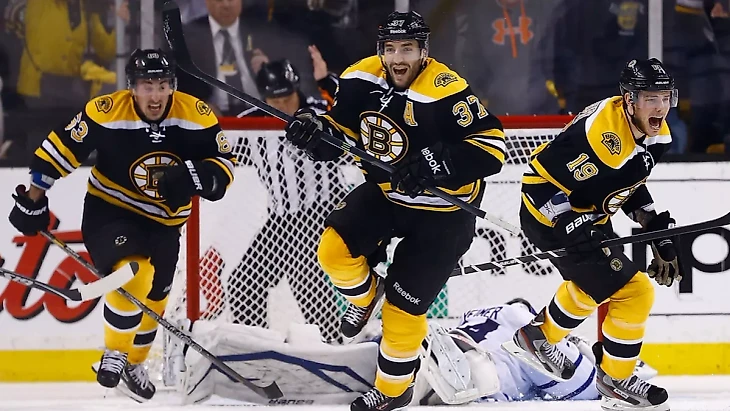 В первую очередь мы опишем вам противостояние 2013 года, однако эти три серии настолько похожи, что мы решили сказать пару слов и про остальные. Каждый раз четвертьфинал востока, седьмой матч в ТД-гардене, триумф «Бостона» и слёзы «Торонто», которые из года в год становятся всё более горькими. Началось это в 2013 году. «Мишки» были экс-обладателями кубка Стэнли, а легендарная канадская команда 9 лет не участвовала в играх на вылет. Коллективы заняли четвёртое и пятое места в конференции соответственно, поэтому «Бостон» имел домашнее преимущество и в целом считался фаворитом. Ожидания подтвердились, в Бостоне команды обменялись победами, а со льда Эйр Канада-центра «Медведи» увезли две гостевые победы и поехали домой на пятый матч с преимуществом в серии 3-1. Однако, «Кленовые листья» не опустили руки, обыграли «Бостон» на их льду 1-2 и вернули серию в Канаду. Шестой матч закончился с аналогичным счётом в пользу хозяев, и команды отправились в Массачусетс на решающую игру серии. Кто бы мог тогда подумать, что эта встреча впоследствии окажется в неофициальном списке лучших не только в 21 веке, но, возможно, и во всей истории НХЛ. «Мишки» открыли счёт, но затем в течение матча хоккеисты «Торонто» забросили 4 шайбы и были очень близки ко второму раунду. На десятой минуте третьего периода Натан Хортон отыграл одну шайбу. Когда командам оставалось сыграть всего полторы минуты, на табло было 2-4 в пользу «Торонто». Никому не известно, какие всевышние силы вмешались в этот матч, однако за 50 секунд до конца счёт был уже 4-4, и игра ушла в овертайм. Он проходил с подавляющим преимуществом «Бостона», которое в итоге вылилось в пятую заброшенную шайбу. Героем матча с уверенностью можно назвать Патриса Бержерона. Звёздный нападающий «Брюинз» забросил не только четвёртую шайбу своей команды, которая позволила сравнять счёт меньше чем за минуту до финальной сирены, но и пятую – победную в овертайме. «Бостон» победил 5-4 в матче и 4-3 в серии, очень уверенно дошёл до финала кубка Стэнли, в котором уступил «Чикаго», а «Мэйпл Лифс» следующего плей-офф пришлось ждать ещё четыре года.