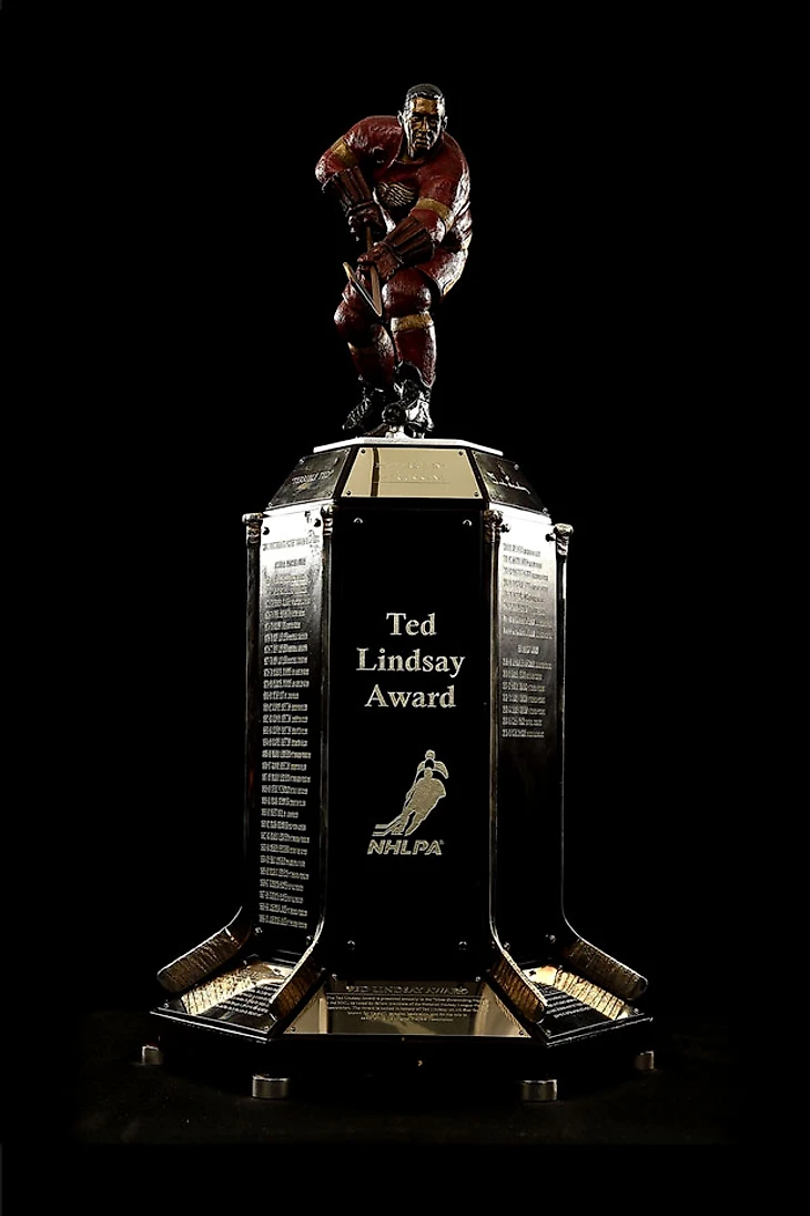 Сам же Тед Линдcей, в честь которого был переименован приз, - легенда "Детройта". С "крыльями" он взял 4 Кубка Стэнли, его 7 номер клуб уже давно вывел из обращения. Всего за карьеру в НХЛ Тед набрал 947 очков с учётом плей-офф при том, что он был просто неисправимым грубияном. 1808 минут штрафа за карьеру, вдумайтесь! Этот "рекорд" был побит только в середине 70-ых. Ещё по ходу своей карьеры, в конце 50-ых, Тед Линдсей стал одним из создателей Ассоциации игроков НХЛ. В общем-то, за эту заслугу приз и переименовали в его честь. Линдсей - настоящий мученик. Именно создание Профсоюза, по сути, и закончило его карьеру в "Детройте". Отношения с генменеджером Джеком Адамсом испортились окончательно, и тот обменял Теда в "Чикаго". Если вам интересно, мы могли бы рассказать полную историю этого конфликта, дайте нам знать об этом в комментариях.