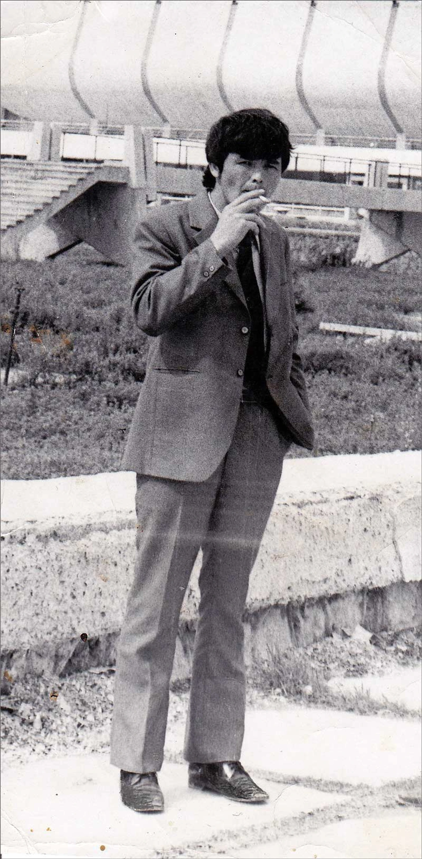 1973 год. Ташкент. Студент факультета журналистики ТашГУ Салай Мадаминов у Дворца спорта «Юбилейный»