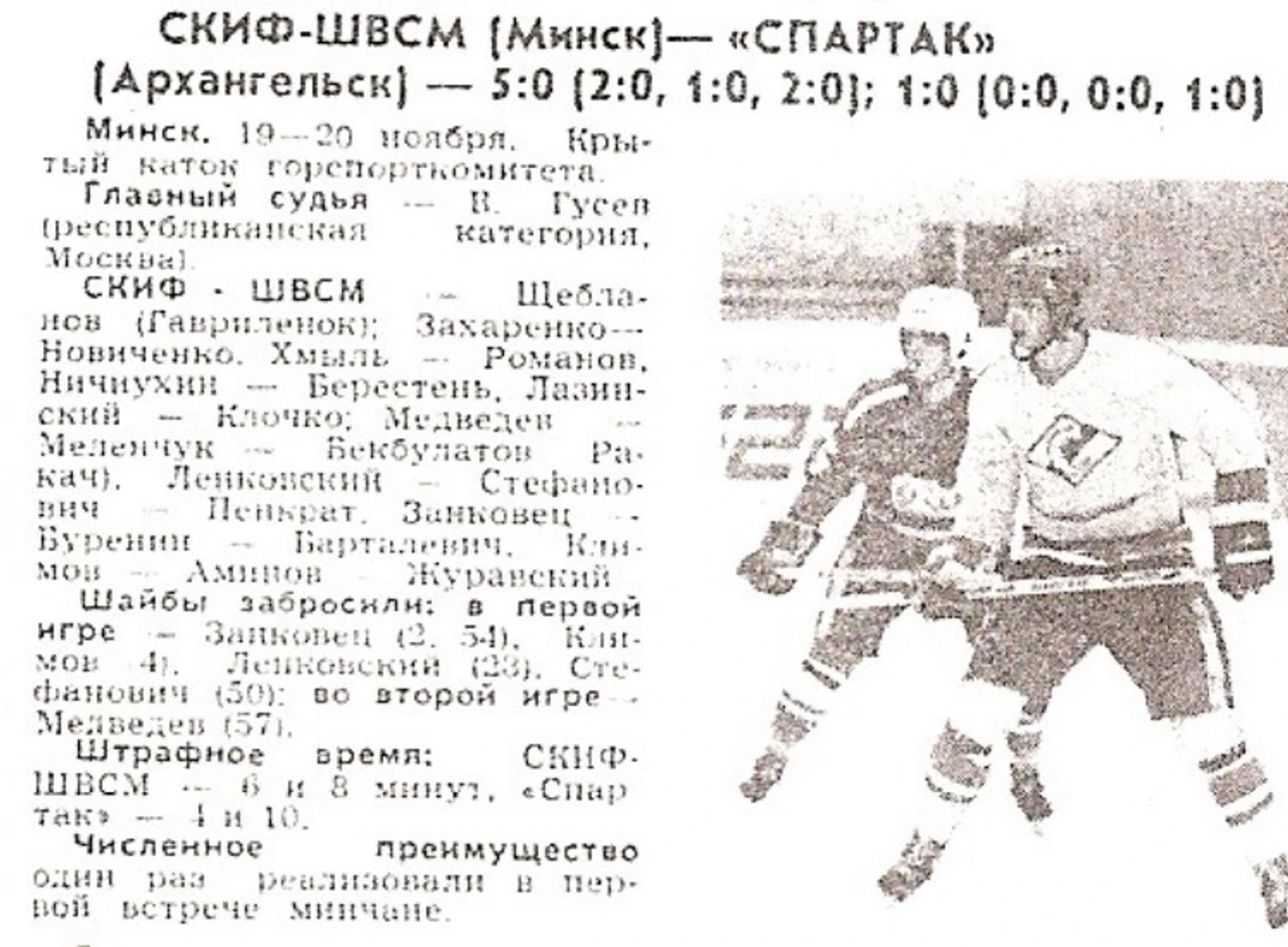 Ноябрь 1988 года. Минск. СКИФ-ШВСМ (Минск) - «Спартак» (Архангельск)