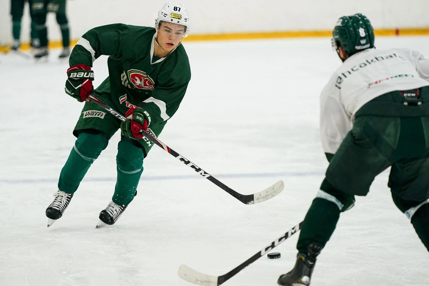 Центрфорвард Дмитрий Кателевский (2003 г.р.). В прошлом сезоне очень удачно дебютировал в "Ирбисе", на данный момент сильнейший игрок своего возраста в системе Ак Барса: