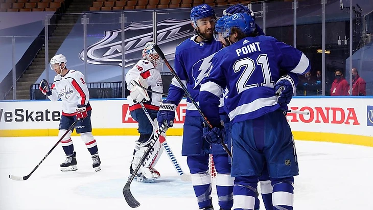 "Тампа-Бэй Лайтнинг"-"Вашингтон Кэпиталз" 3:2 (ОТ).Никита Кучеров во 2 овертайме принёс победу хозяева.Никита Кучеров забросил 2 шайбы,Брэйден Пойнт набрал 2 очка (1+1),Андрей Василевский отразил 31 бросок.У гостей Евгений Кузнецов забросил одну шайбу,Дмитрий Орлов отдал результативную передачу."Молнии" повели в серии 1-0.