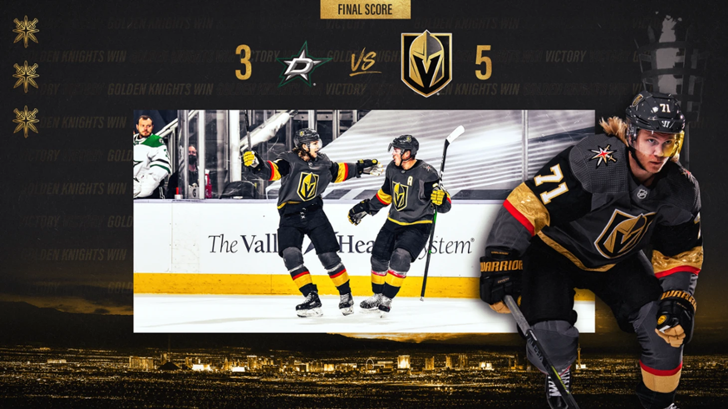 "Вегас Голден Найтс"-"Даллас Старз" 5:3.В 3 периоде хозяева забросили 4 безответные шайбы.Марк Стоун с Уильямом Карлссоном и Нэйтом Шмидтом набрали по 2 очка (1+1),Робин Ленер отразил 25 бросков.У гостей Миро Хейсканен отдал 3 результативные передачи."Рыцари" повели в серии 1-0.