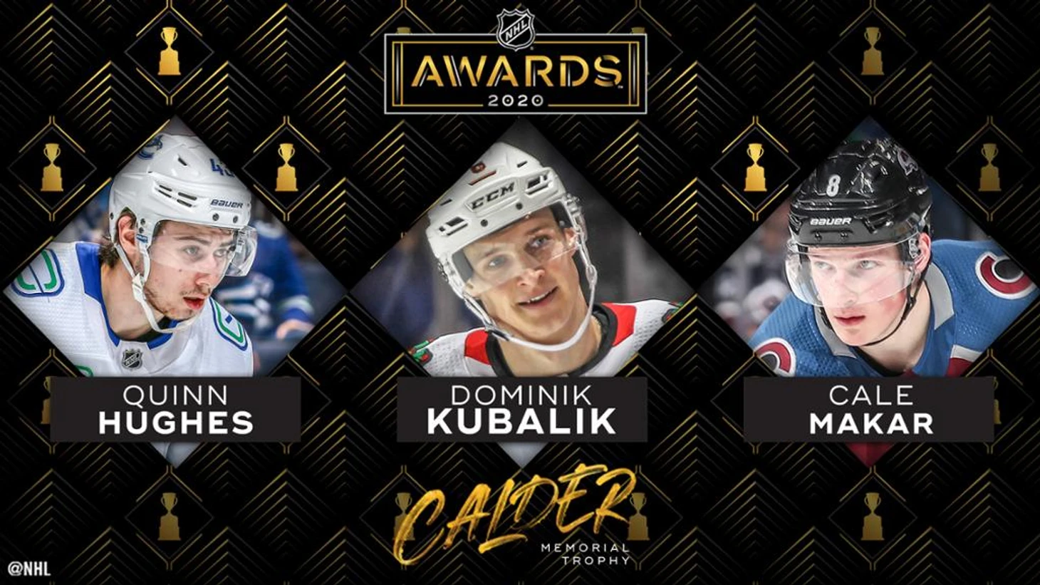 Колдер Трофи - приз лучшему новичку сезона в Национальной Хоккейной Лиге, вручаемый по результатам тайного голосования среди членов Ассоциации спортивных журналистов НХЛ. В этом сезоне на трофей претендуют Куинн Хьюз, Кейл Макар и Доминик Кубалик.