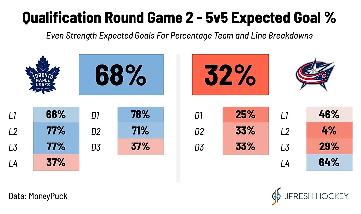Кленовые листья не имели больше права на ошибку. Им предстояло либо сейчас сохранить серию и довести дело до 5-ой игры, либо в паре с Эдмонтоном продолжать разыгрывать матчи, вылетев вдвоем уже в предварительном раунде. Коламбус уже молниеносно забивает на 3:58. Торонто теряет шайбу после броска и при неудачном падении Робертсона, Дюбуа подхватывает шайбу и с Аткинсоном выбегают 2 в 1 и реализуют момент: