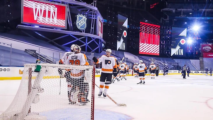 "Тампа-Бэй Лайтнинг"-"Филадельфия Флайерс" 1:4.Николя Обе-Кубель забросил 2 шайбы,Джоэль Фараби набрал 2 очка (1+1),Шон Кутюрье и Шейн Гостибере отдали по 2 результативные передачи,Картер Харт отразил 23 броска.