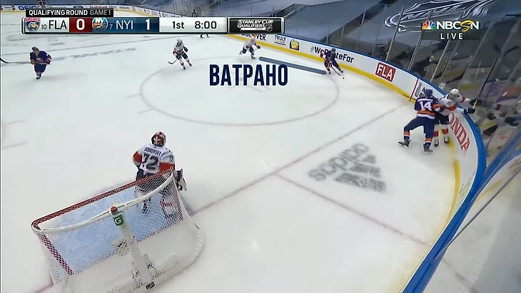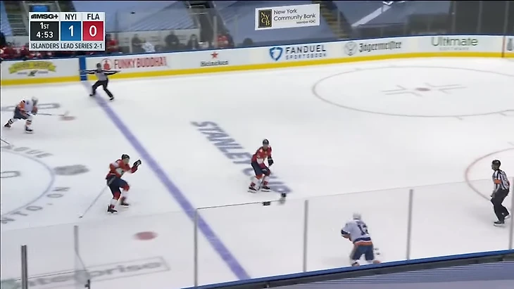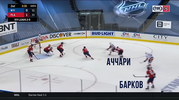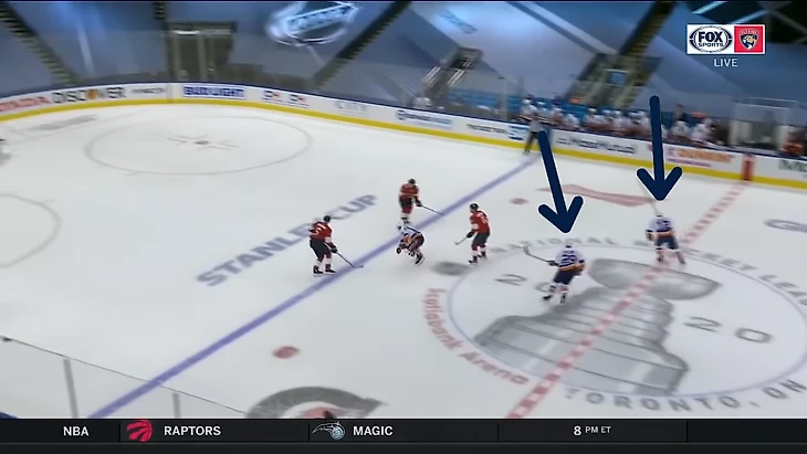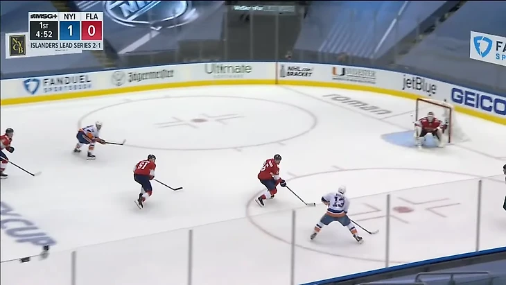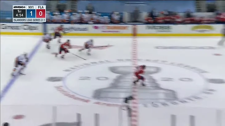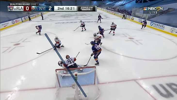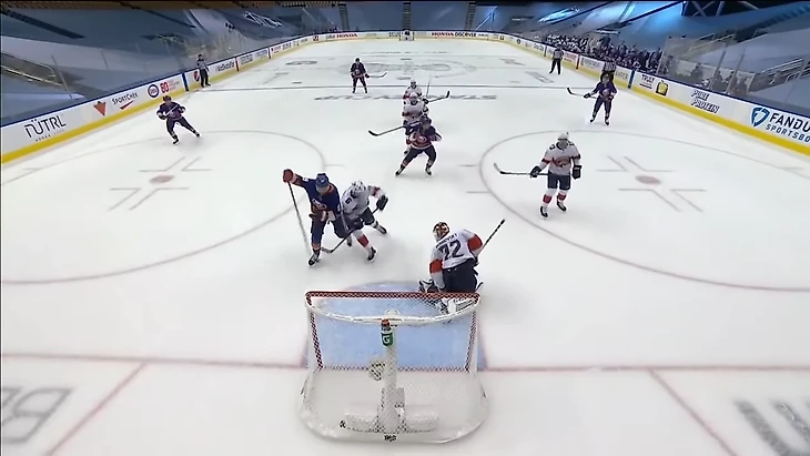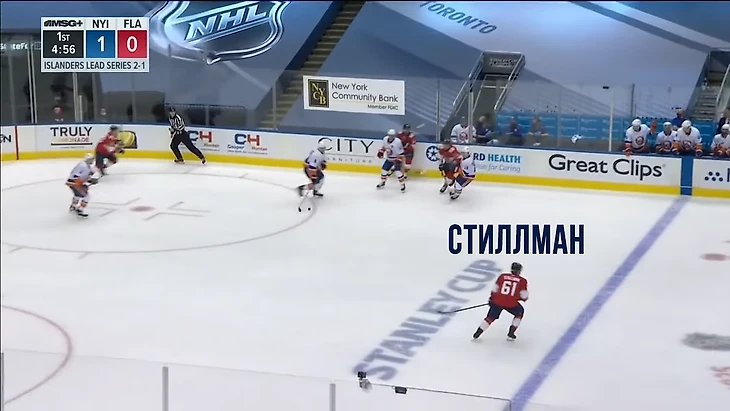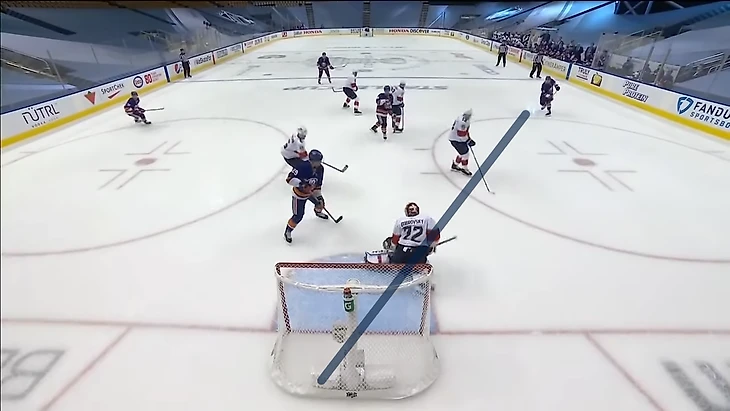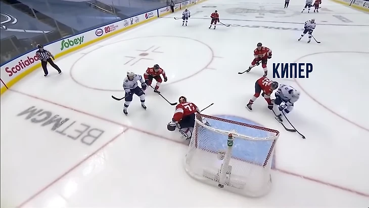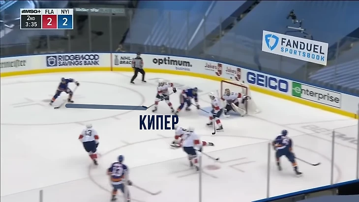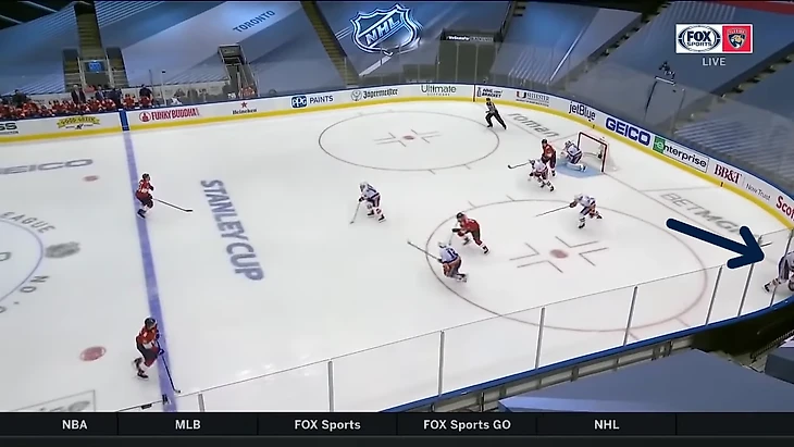 Вообще за центрального нападающего должен отвечать центральный. У Флориды в этом моменте на льду Барков, но во время атаки на свои ворота он вообще далеко.