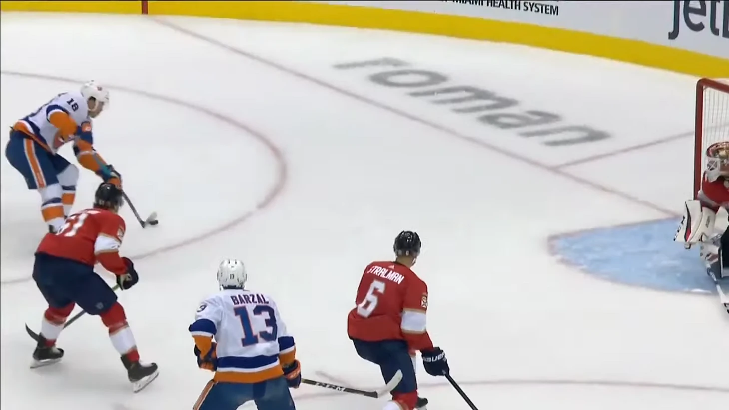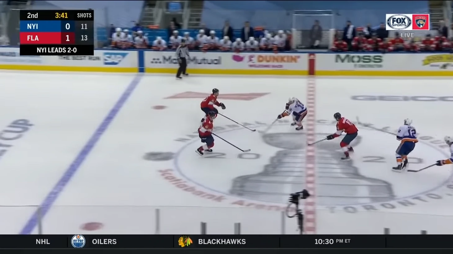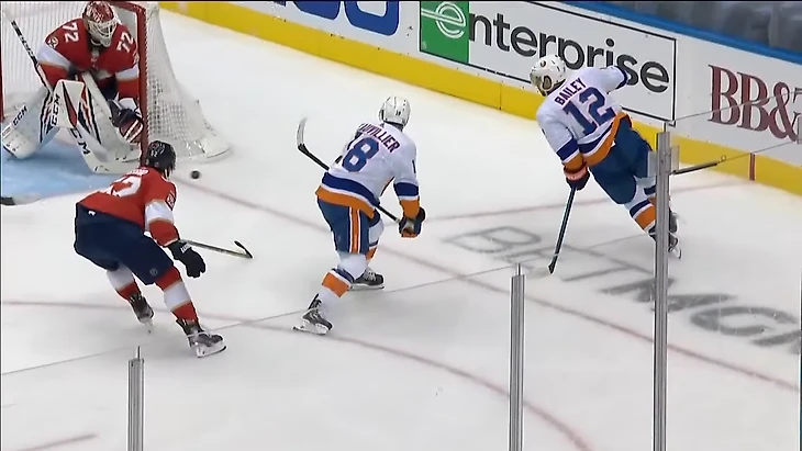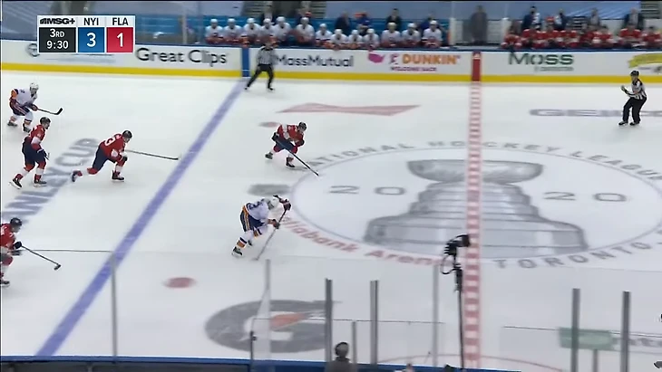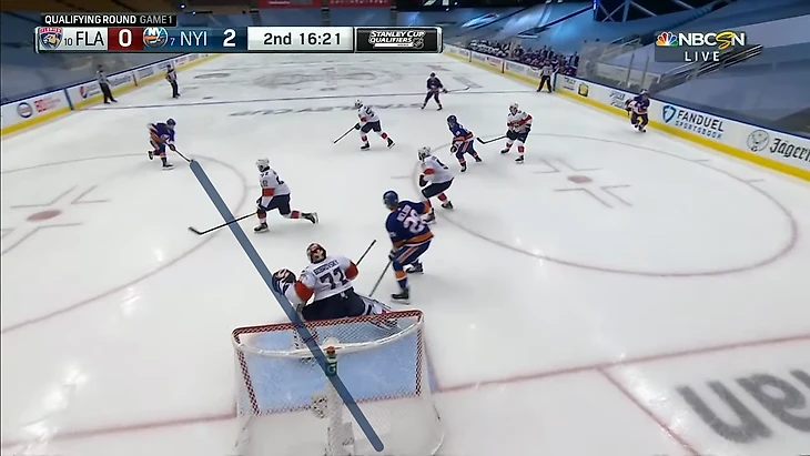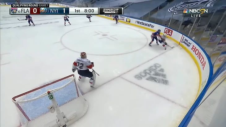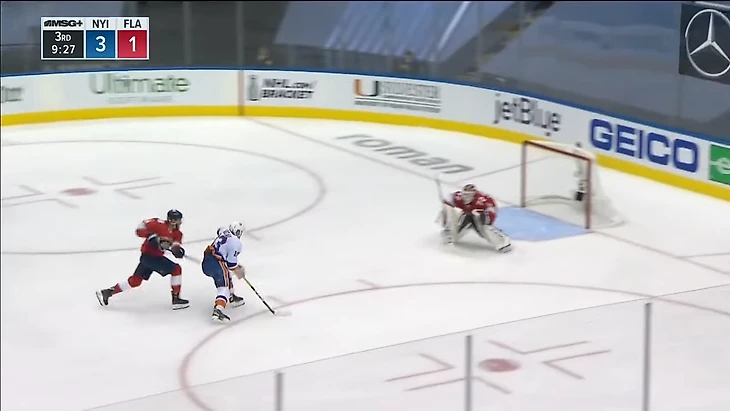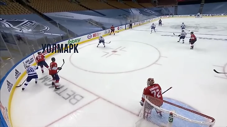 Вообще за центрального нападающего должен отвечать центральный. У Флориды в этом моменте на льду Барков, но во время атаки на свои ворота он вообще далеко.