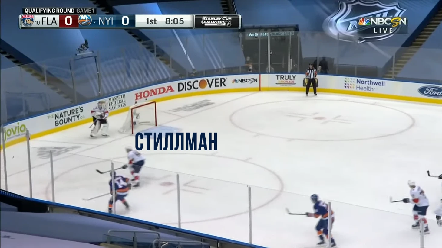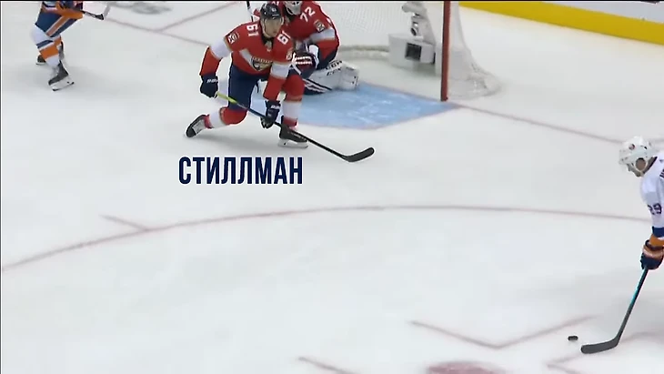 Айлендерс отбирают шайбу и начинают контратаку. Стиллман на синей линии.