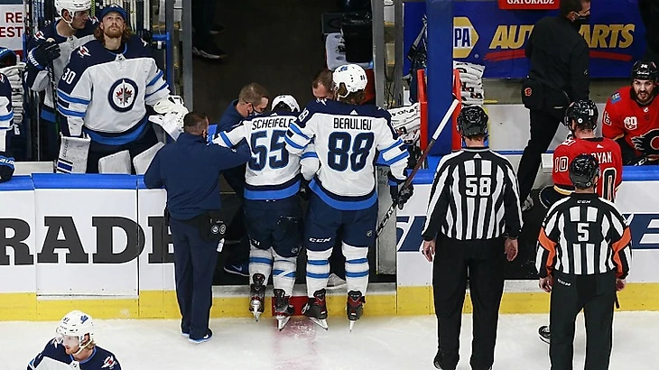 Матч серии. Можно с точностью до секунды вычислить момент, когда «Джетс» проиграли эту серию. И это не финальная сирена после четвертого матча. Прошло чуть больше 5 минут с начала первой игры, как Марк Шайфли корчился на льду от боли после столкновения с Мэттью Ткачаком. Сразу было понятно, что дело серьезное, но как оказалось, что это только начало. «Виннипег» не сумел перестроиться и оказать достойного сопротивления «Калгари», хоть и повел в счете в середине первого периода.